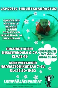 La 17.1.2026: Ilmoittautumisaikaa on jatkettu kaikkien lasten ja nuorten keväänryhmien ilmoittautumisen osalta huhtikuun loppuun asti eli ryhmiin pystyy edelleen käymään ilmoittautumassa mukaan.